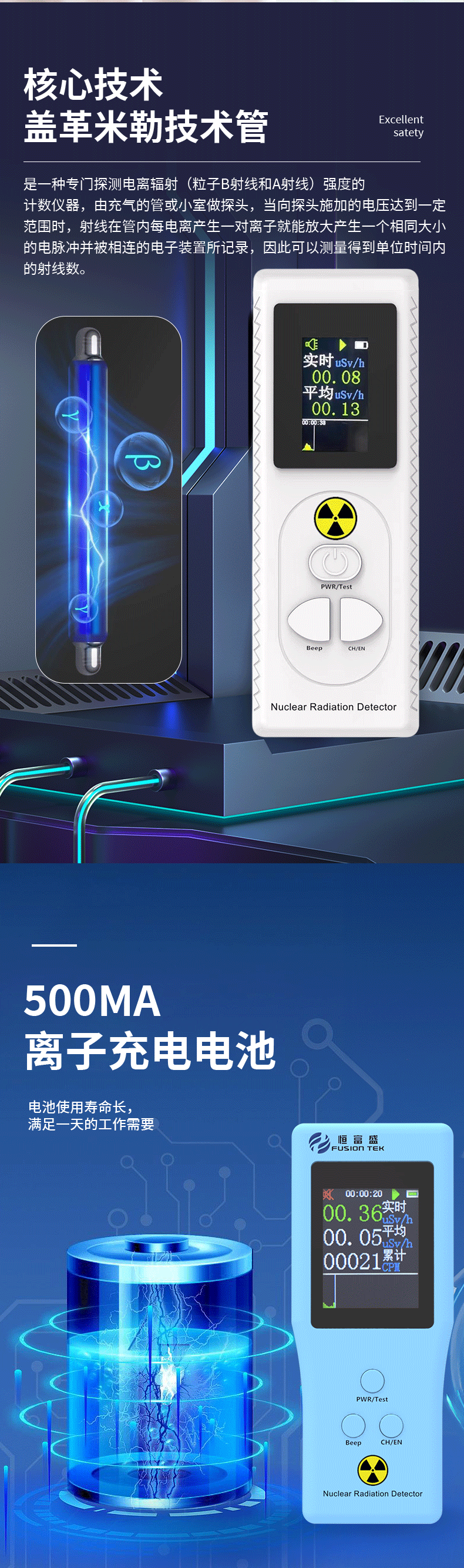 核輻射檢測儀的工作原理基于核輻射與物質相互作用產生的效應,不同類型的核輻射在探測器中產生特定的效應,然后通過測量這些效應判斷輻射的存在核強度。